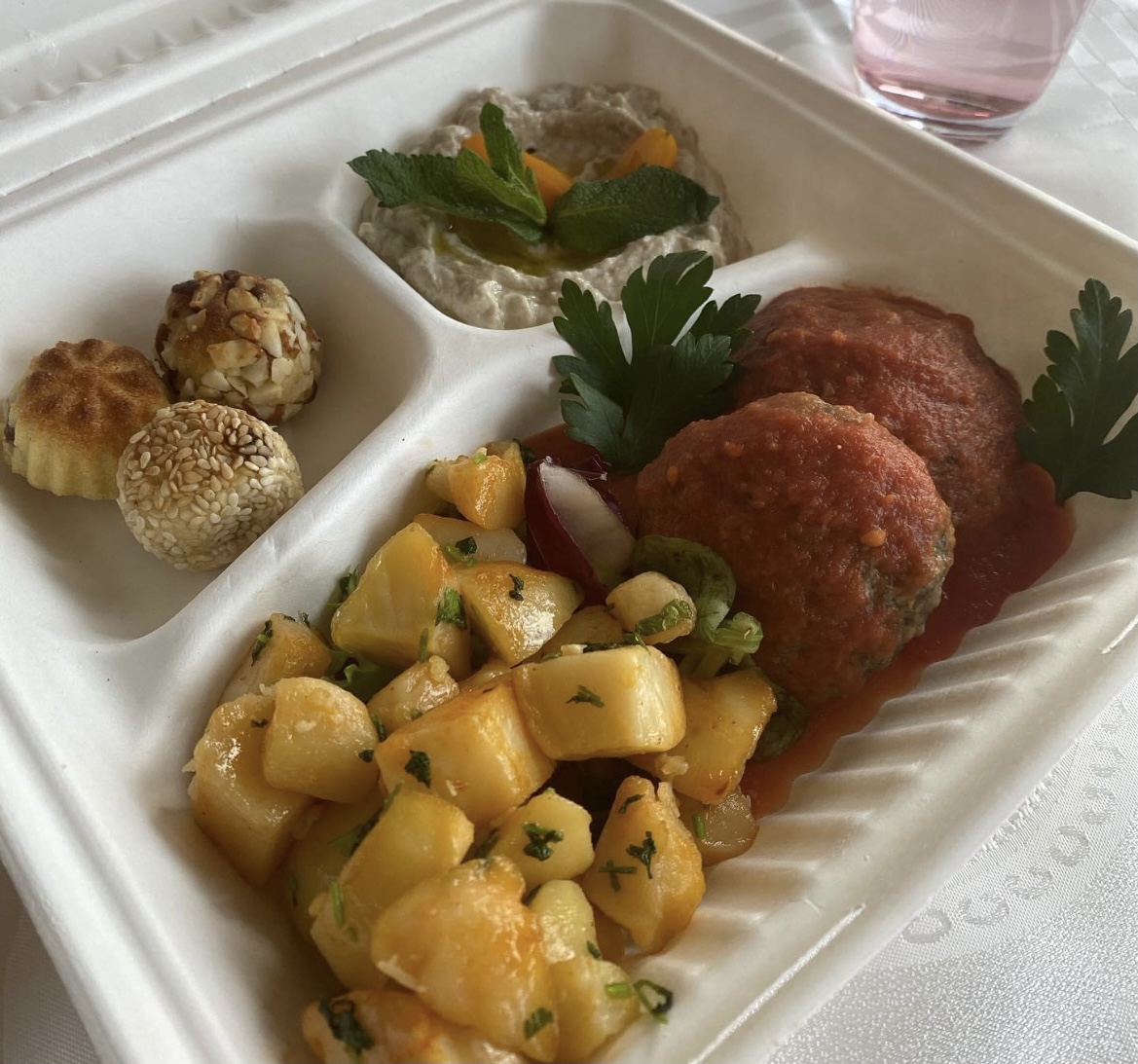 For the meat lovers, the Lamb Shawarma, served with a fresh salad, is a standout dish. The tender lamb, seasoned with aromatic spices and grilled to perfection, is sure to leave your taste buds dancing. Another fantastic option is the Chicken Shish Tawook, with juicy, marinated chicken skewers that are packed with flavor. And don’t miss the Lamb Meatballs, perfectly spiced and served with a rich, savory sauce that’s simply irresistible.